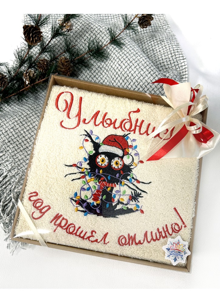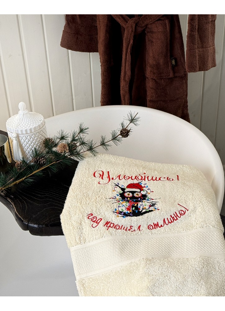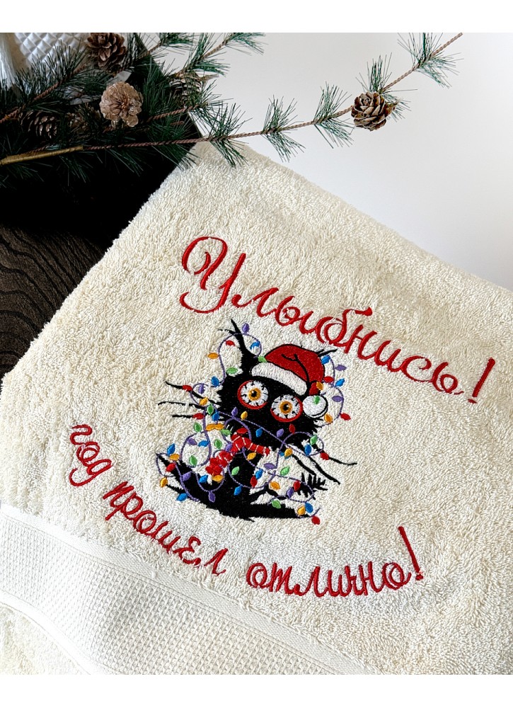Liels frotē dvielis ar Ziemassvētku izšuvumu – Dāvanu dvielis ar novēlējumu | Y65