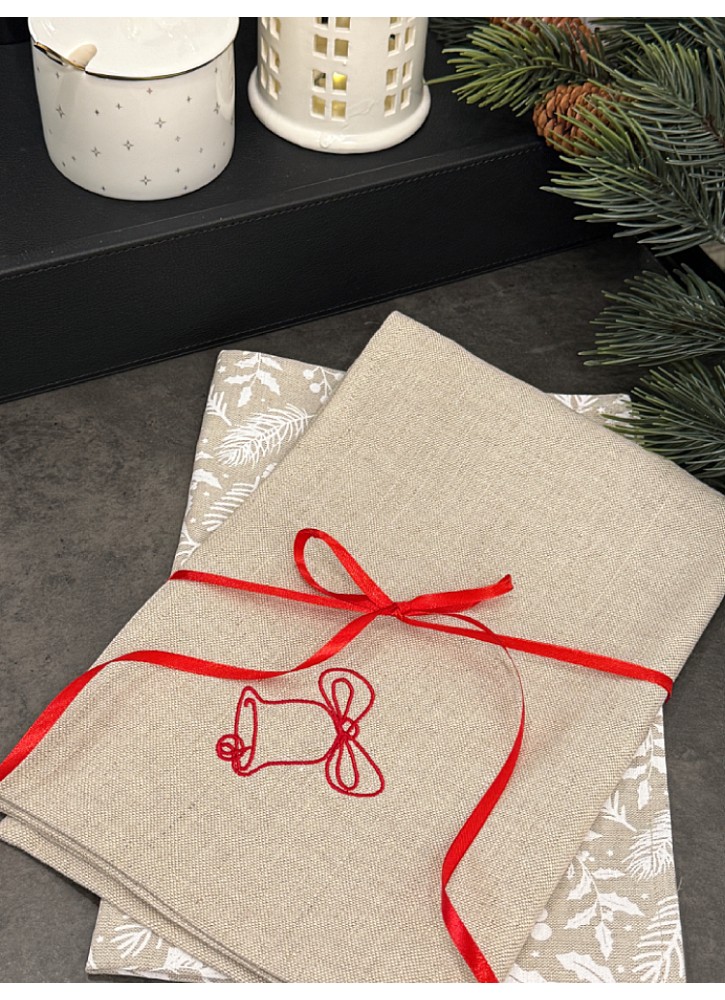 Dāvanu komplekts – Lina virtuves dvieļi ar Ziemassvētku izšuvumu | Zvaniņš