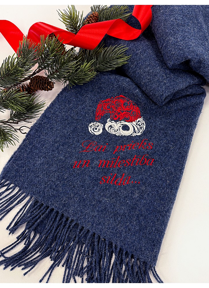 Vilnas pleds ar izšuvumu – Sirsnīga dāvana Ziemassvētkos, zils |ZS46