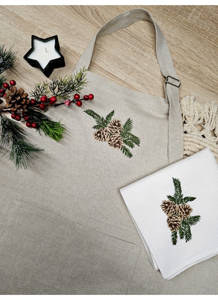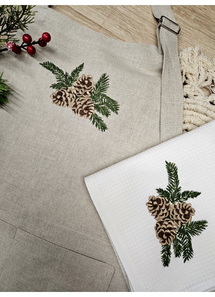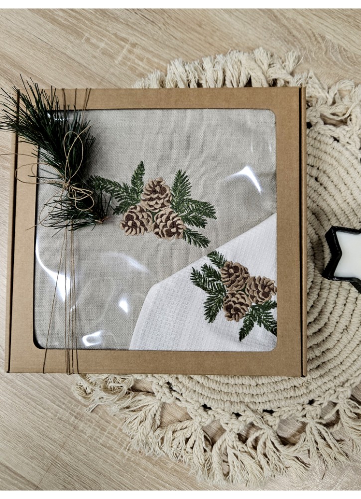 Ziemassvētku dāvanu komplektsi: priekšauts ar izšuvuvumu un 100% kokvilnas vafeļdvielis ar izšuvumu, ipakots dāvanu kastē