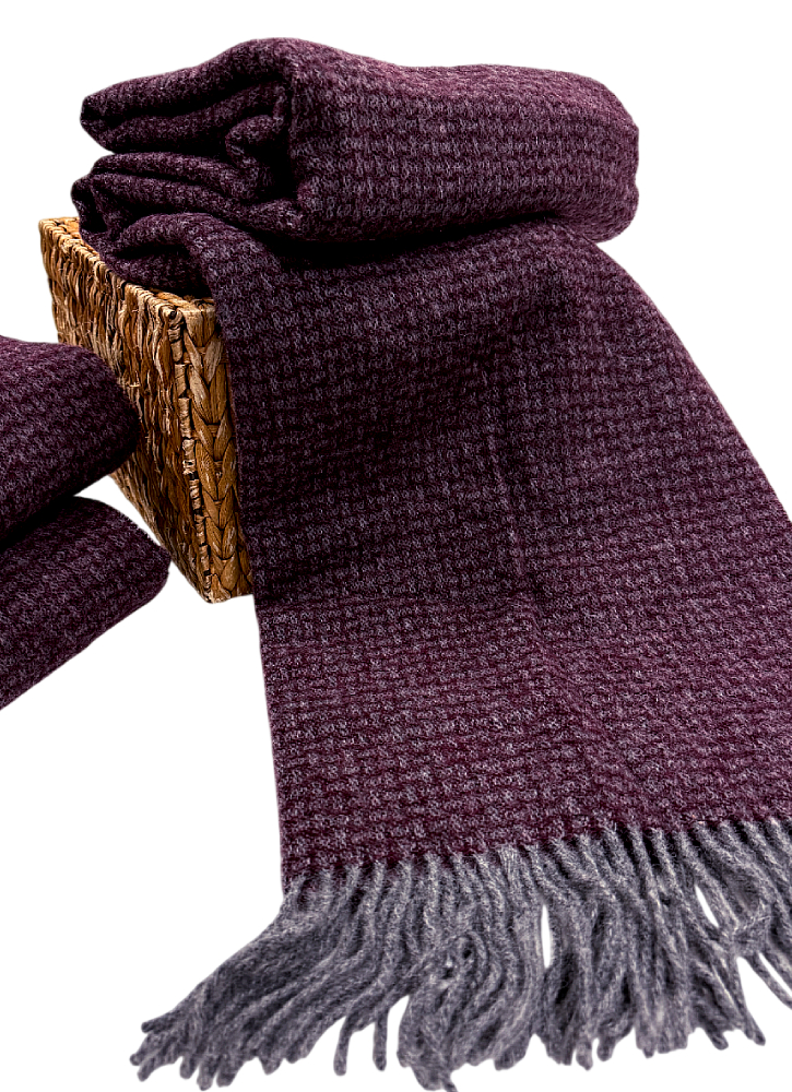 Augstākās kvalitātes vilnas pleds ir izgatavots no 100% Jaunzēlandes aitu vilnas – slavenas ar tās maigumu, izturību un siltumu.