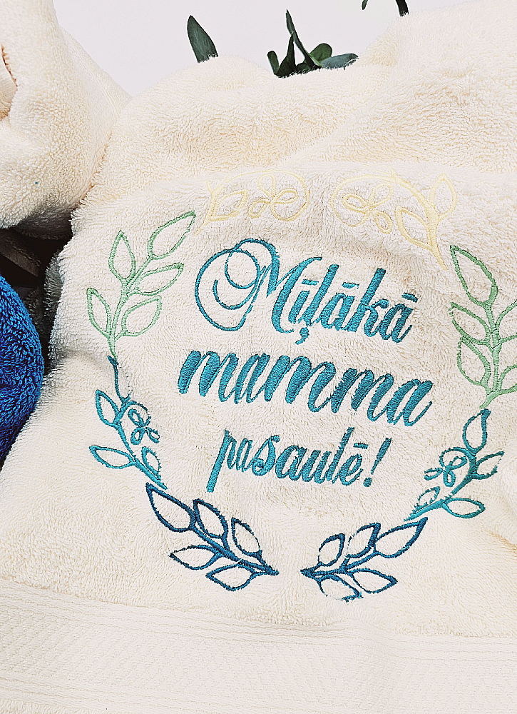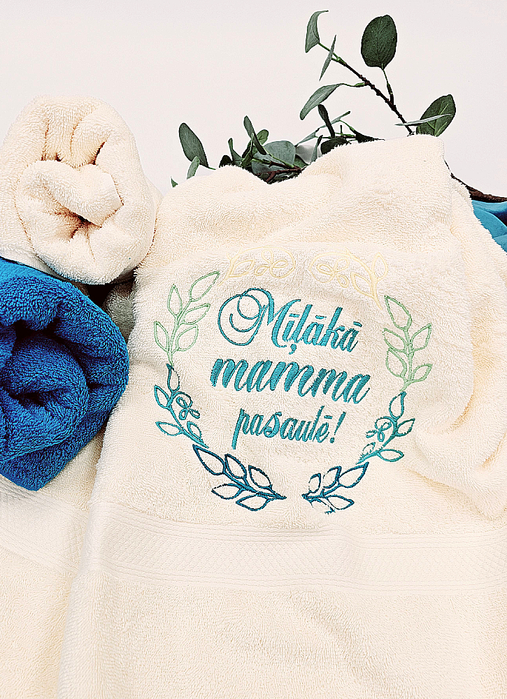 LUX frotē dvielis ar izšuvumu MĪĻĀKĀ MAMMA PASAULĒ [Y32]