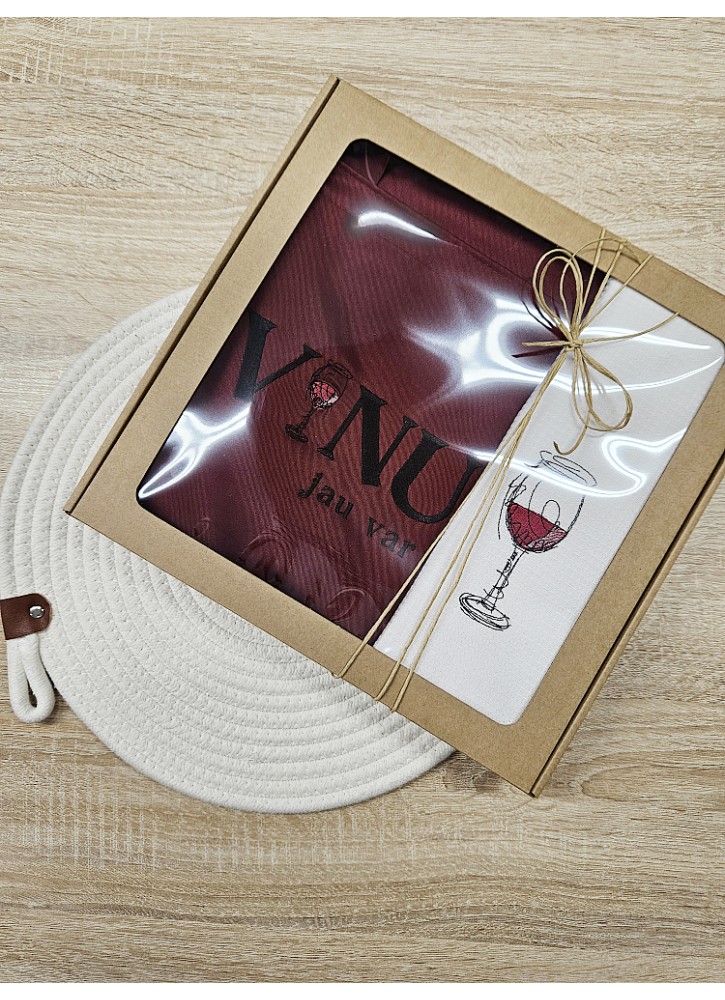 Dāvanu komplekts: priekšauts un virtives dvielis VĪNU JAU VAR