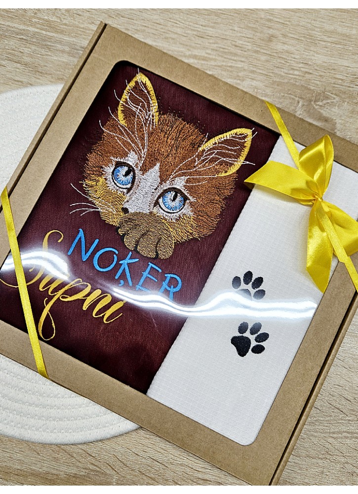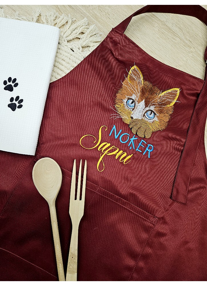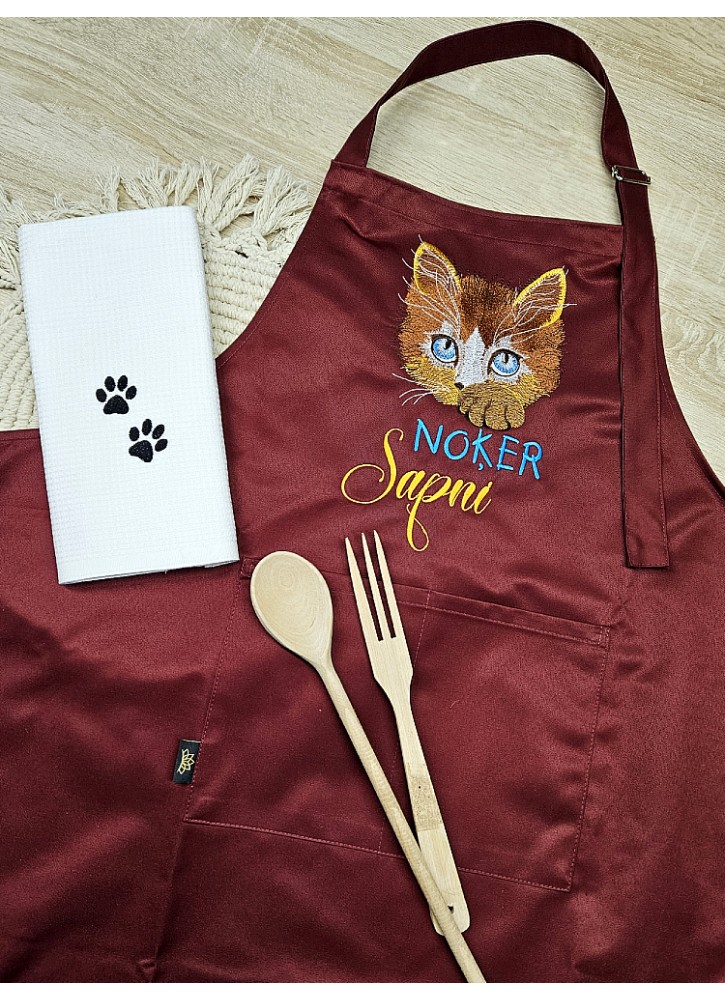 Dāvanu komplektsi: priekšauts ar izšuvuvumu un 100% kokvilnas vafeļdvielis ar izšuvumu, ipakots dāvanu kastē