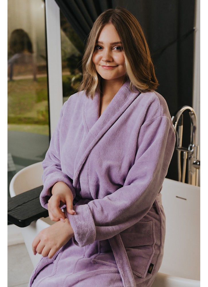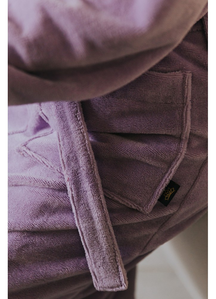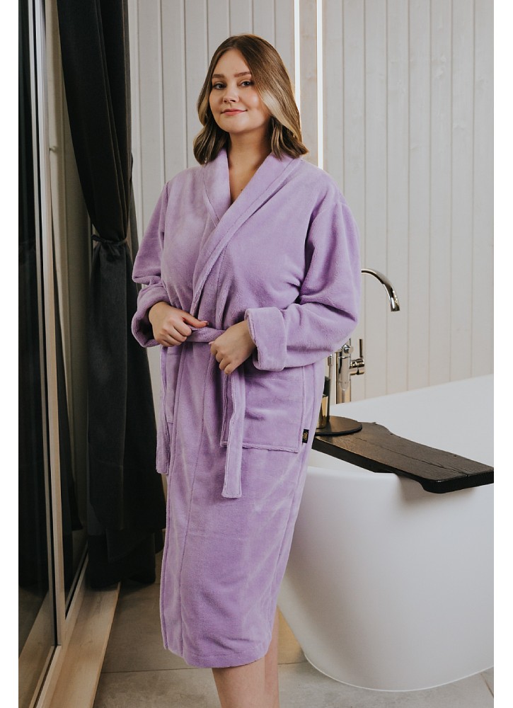 Pievilcīgs, mīksts halāts GRAND. Samtains velūrs no halāta ārpuses un vienreizēji maigs un mīksts audums no iekšpuses, jo tieši iekšpusē ir bambusa frotes slānis, kas radis ķermenim perfektu komfortu.
